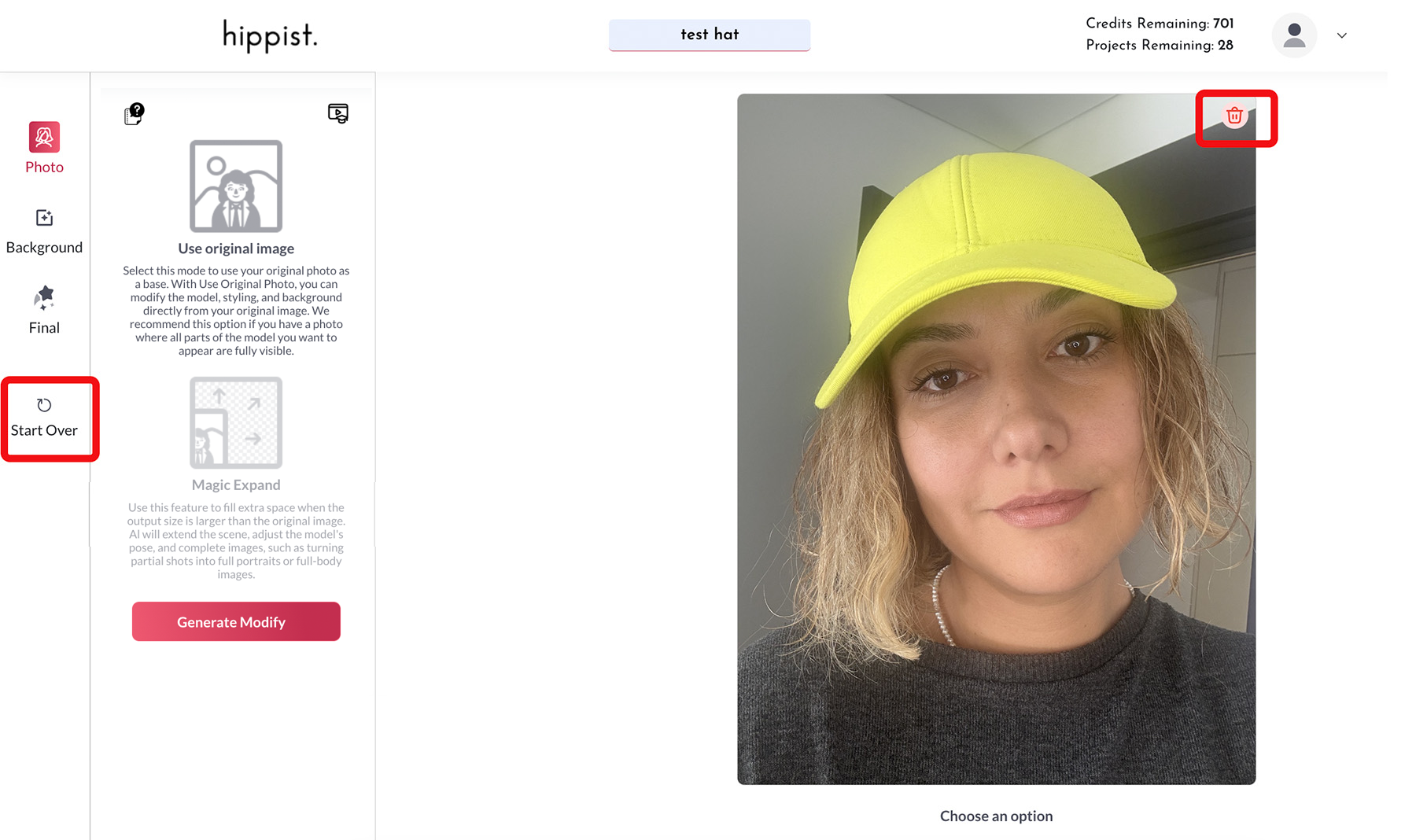 If you are not happy with the photo, you can simply **delete it** or **Start Over** to upload a new one and try again