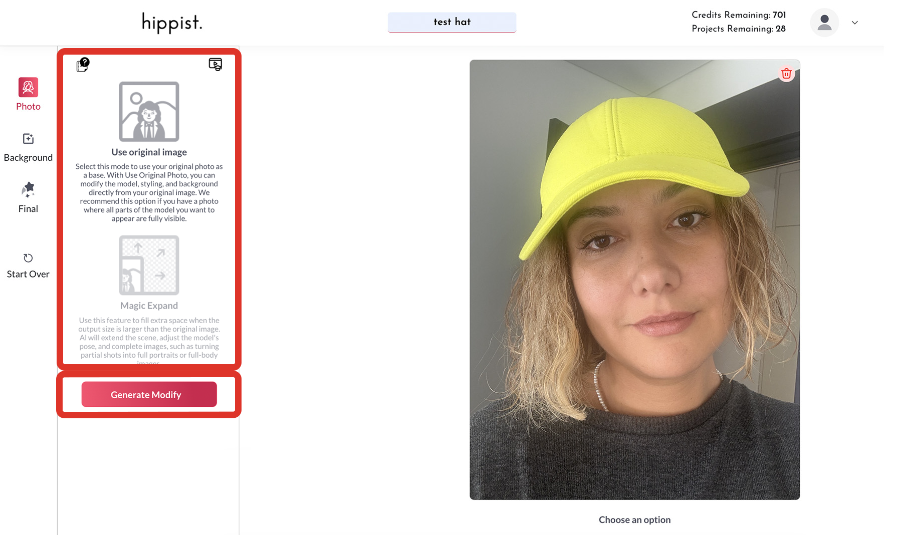* Select this option to use your original photo as a base. With **Use Original Photo**, you can modify the **model, styling, and background** directly from your original image.